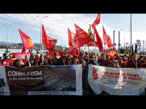 Με παλμό, μαχητικότητα και ενθουσιασμό το πρωί της Δευτέρας 16 Οκτώβρη χιλιάδες νέοι και νέες από τις Οργανώσεις-μέλη της Παγκόσμιας Ομοσπονδίας Δημοκρατικών Νεολαιών τίμησαν τα 100 χρόνια από τη Μεγάλη Οκτωβριανή Σοσιαλιστική Επανάσταση, με μία μεγάλη διαδήλωση αφιερωμένη σ’ αυτό το κοσμοϊστορικό γεγονός, με την οποία κηρύχθηκε από τις Οργανώσεις της ΠΟΔΝ η έναρξη του 19ου ΠΦΝΦ.