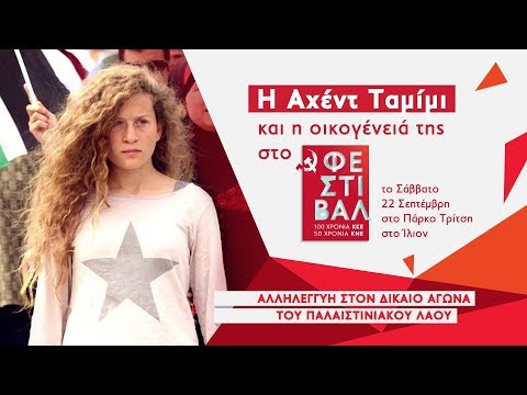Η ΚΝΕ με χαρά ανακοινώνει ότι η 17χρονη Παλαιστίνια αγωνίστρια Αχέντ Ταμίμι και η οικογένειά της θα πάρουν μέρος στις κεντρικές εκδηλώσεις του «Φεστιβάλ 100 χρόνια ΚΚΕ - 50 χρόνια ΚΝΕ», το Σάββατο 22 Σεπτέμβρη στο πάρκο Τρίτση στο Ίλιον.