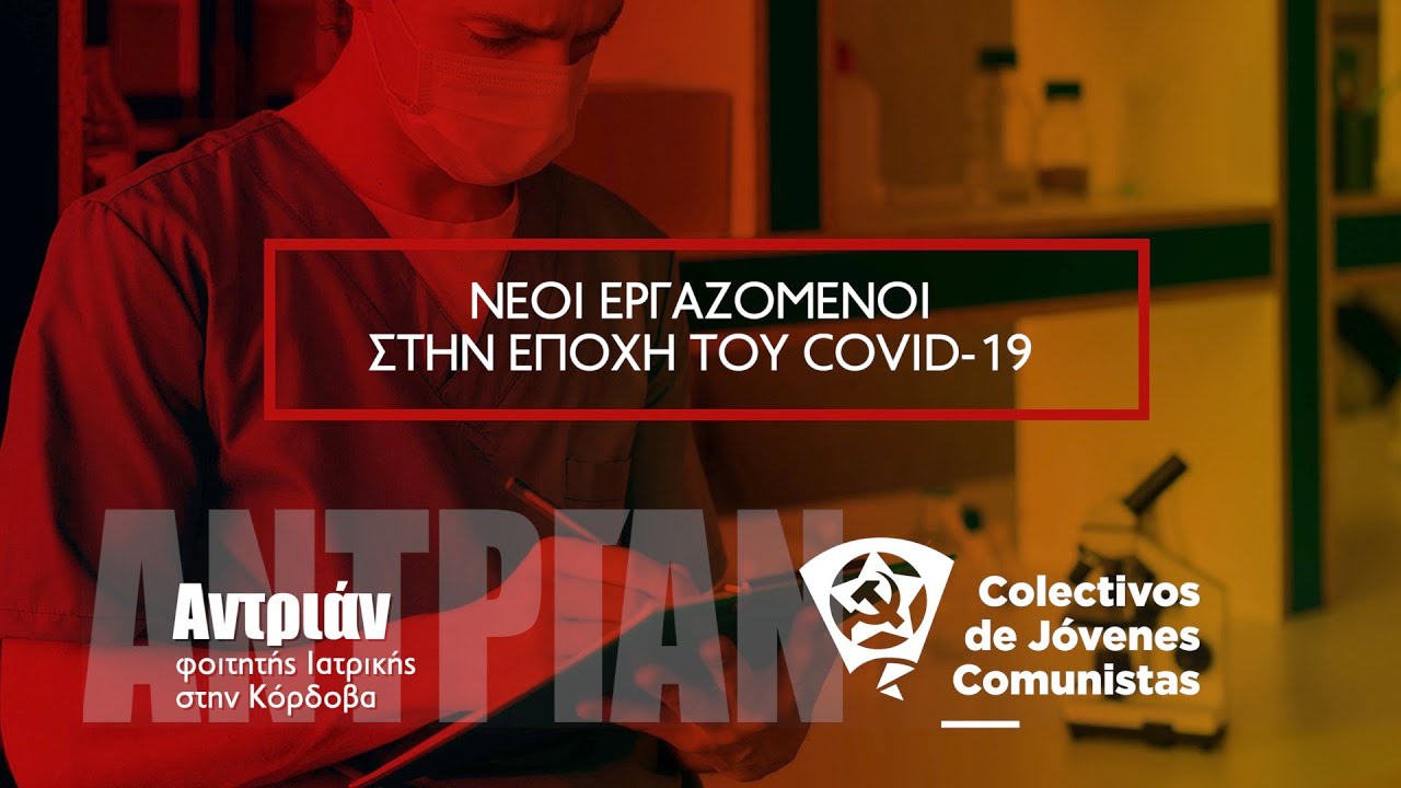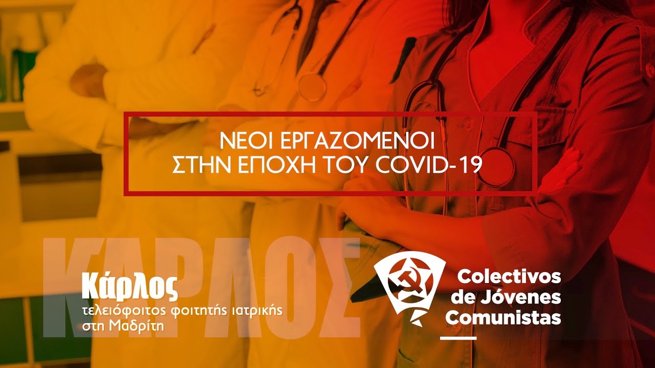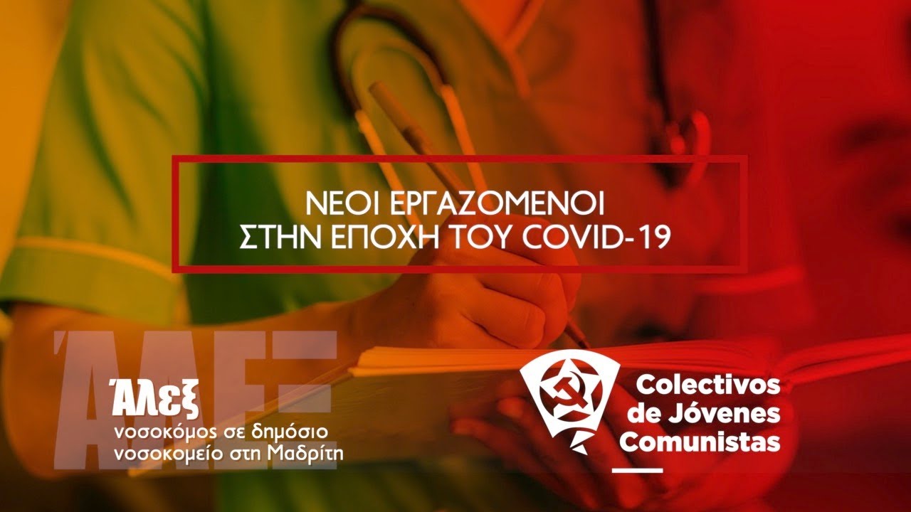 Με βίντεο, αφίσες, άρθρα, στοιχεία που προβάλλονται σε διαδικτυακά infographics, πανό στήριξης στα δίκαια αιτήματα των γιατρών που τοποθετούνται σε πλατείες, δρόμους και μπαλκόνια, οι Κολεκτίβες Νέων Κομμουνιστών από την Ισπανία αναδεικνύουν τα μεγάλα προβλήματα των νέων εργαζόμενων σε όλη τη χώρα τους. Τις απολύσεις, την εκ περιτροπής εργασία, τις μειώσεις μισθών, τα ελλιπή μέτρα προφύλαξης σε συνθήκες πανδημίας, καθώς και την τραγική κατάσταση του δημόσιου συστήματος Υγείας.